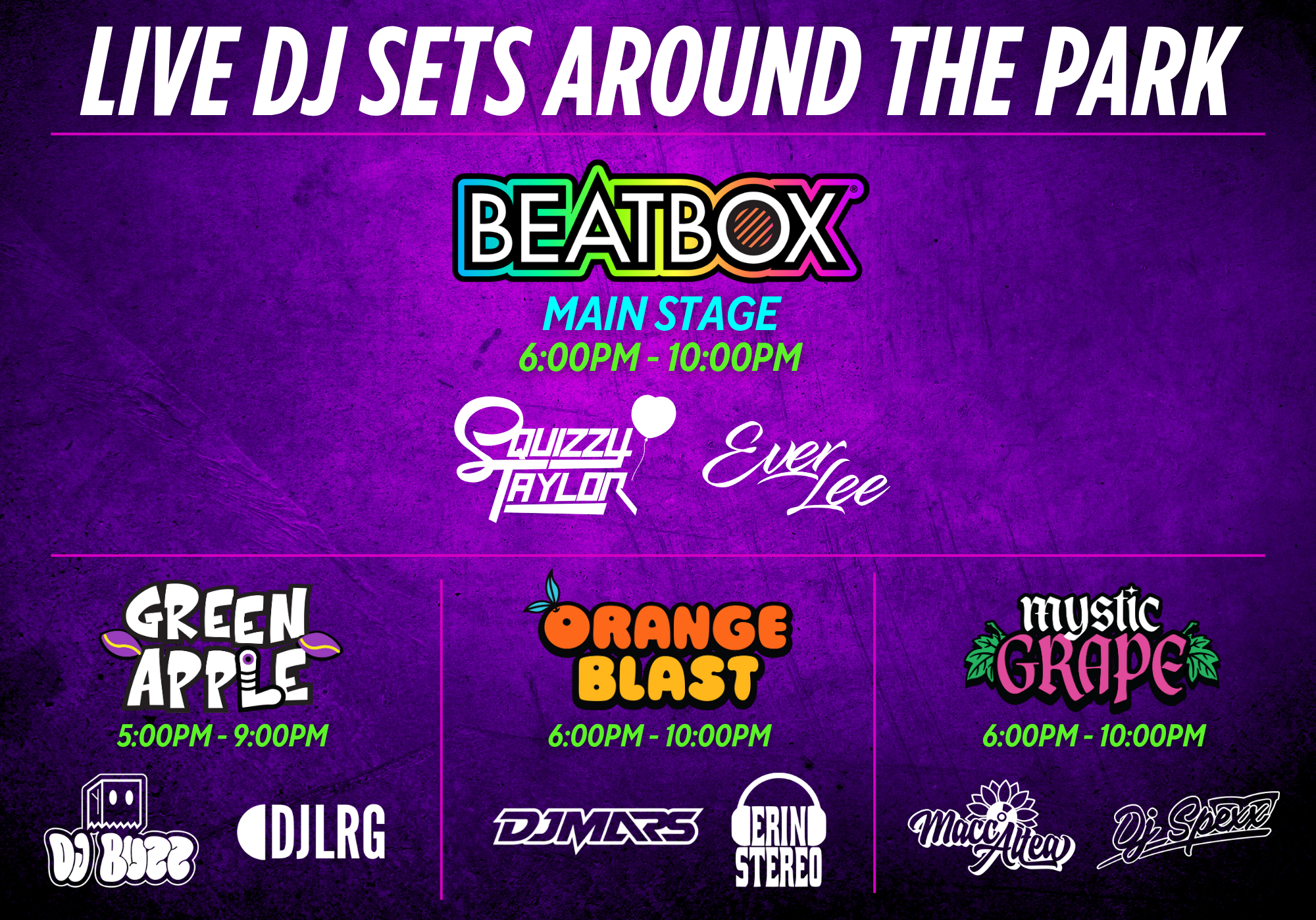 Live DJs: DJ Squizzy Taylor, DJ Everlee, DJ Mars, DJ Erin Stereo, DJ Macc Altea, DJ Spexx, DJ Buzz and DJ LRG. Powered by the Denver DJ School.