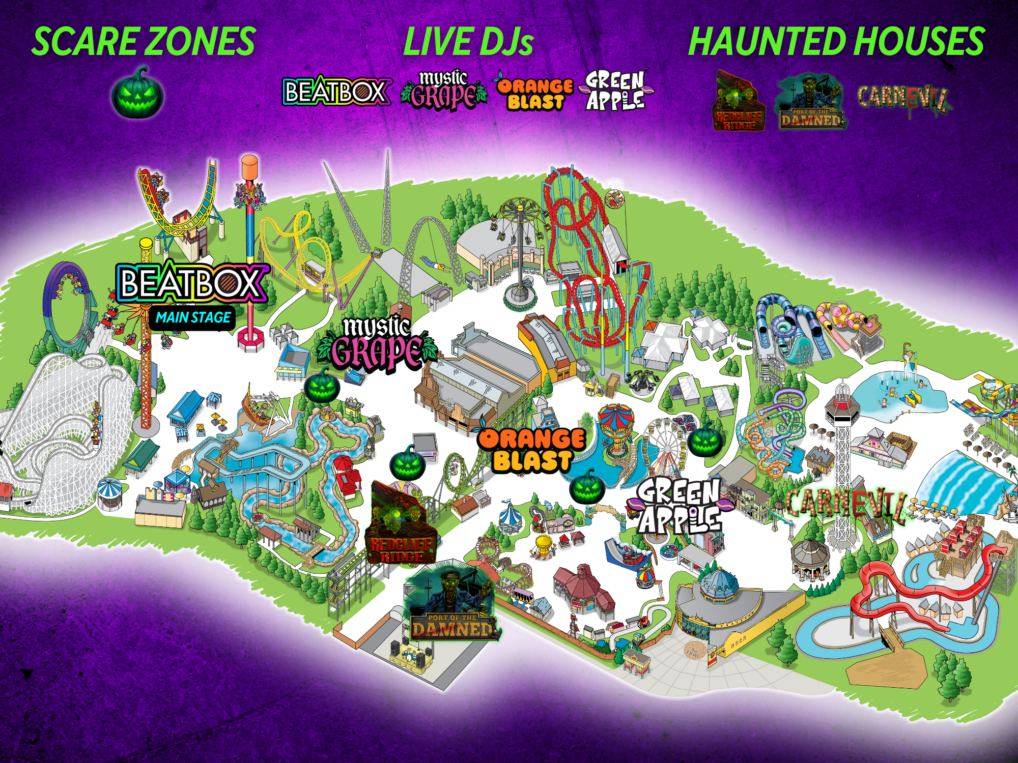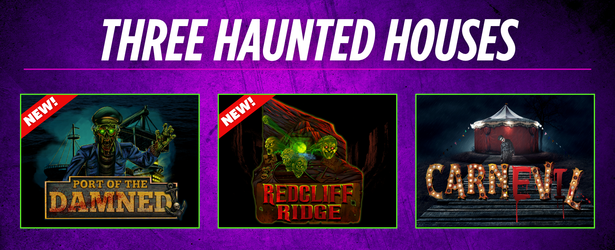Unlimited Haunted Attractions: Port of the Damned haunted house (NEW), Redcliff Ridge haunted house (NEW), CARN-EVIL haunted house and four TERRORtories!