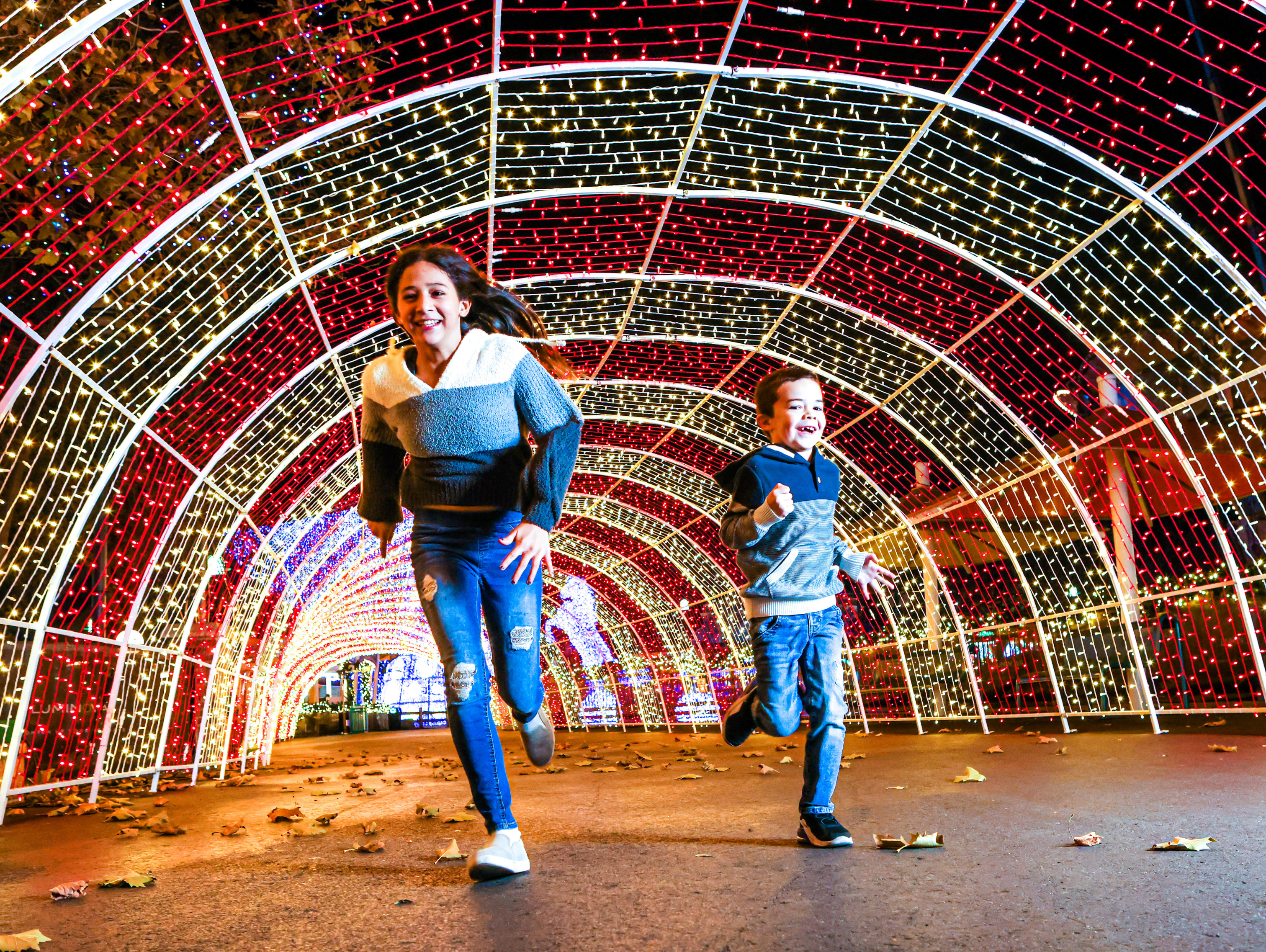 – Includes dazzling lights, live shows, visits with Santa and theme park rides